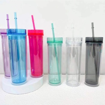Atacado personalizado acrílico 16oz dupla parede transparente cor sólida copo de plástico transparente estudante simples